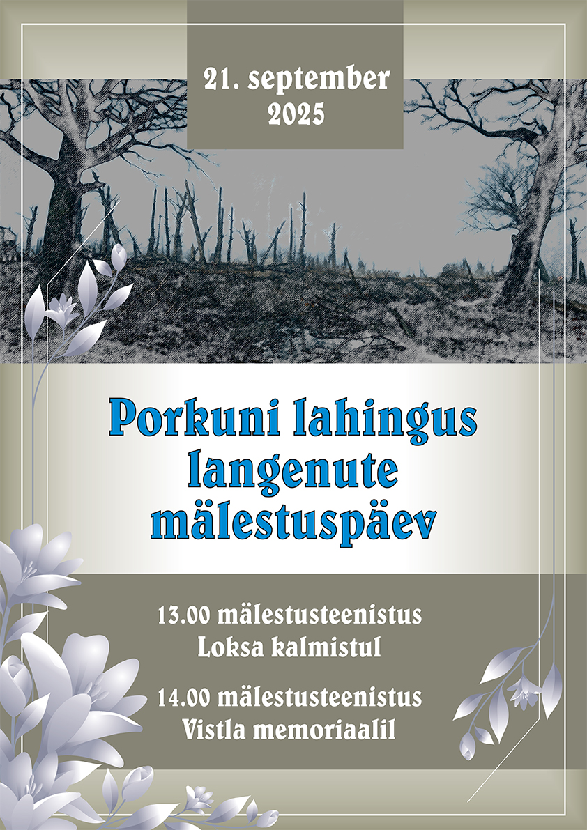 Kell 13.00 mälestusteenistus Loksa kalmistul Kell 14.00 mälestusteenistus Vistla memoriaalil